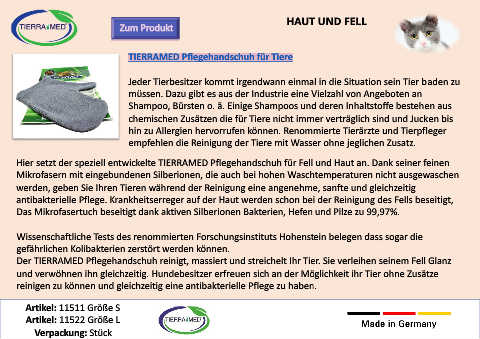 Der TIERRAMED Pflegehandschuh reinigt, massiert und streichelt Ihr Tier. Sie verleihen seinem Fell Glanz